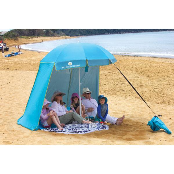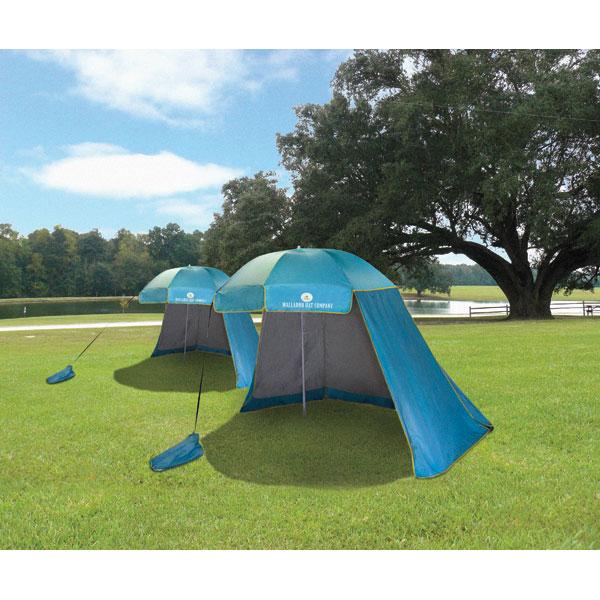 A lightweight, portable sun shade that provides five times more shade than a standard beach umbrella. Four panels of durable UPF 50+ rated polyester fabric roll up or down - and velcro together - for optimal "wall" placement. Sand anchors and tent pegs keep everything in place. Convenient carry bag. 70"W x 81"H.